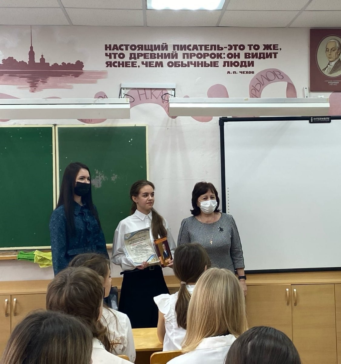 В октябре 2021 года ученики 6Г класса приняли участие в I Всероссийском конкурсе видеороликов и эссе имени Л.П. Гребнева «Спасибо вам, учителя!». Результат участия — 2 место в номинации «Лучший видеоролик» в возрастной категории «4-6 классы».