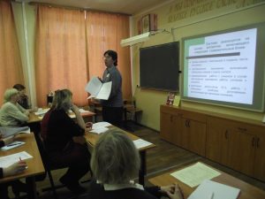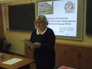 Опыт работы по теме семинара представили учителя русского языка и литературы школы: Иконникова Елены Владимировны — открытый урок литературы в 10в классе по теме «Анализ эпического произведения (на примере повести Н.С.Лескова «Очарованный странник») и выступление по теме «Система работы методического объединения учителей русского языка и литературы по обеспечению качества образовательных результатов»; Раёва Елена Александровна- открытый урок русского языка в 10б классе по теме «Работа над изобразительно-выразительными средствами на уроке русского языка»; Козлов Дмитрий Николевич — мастер-класс «Подготовка к сочинению — рассуждению в 11 классе (русский язык)»; Новоселова Любовь Григорьевна- выступление по теме «Методика подготовки выпускников к ГИА-11 по русскому языку».