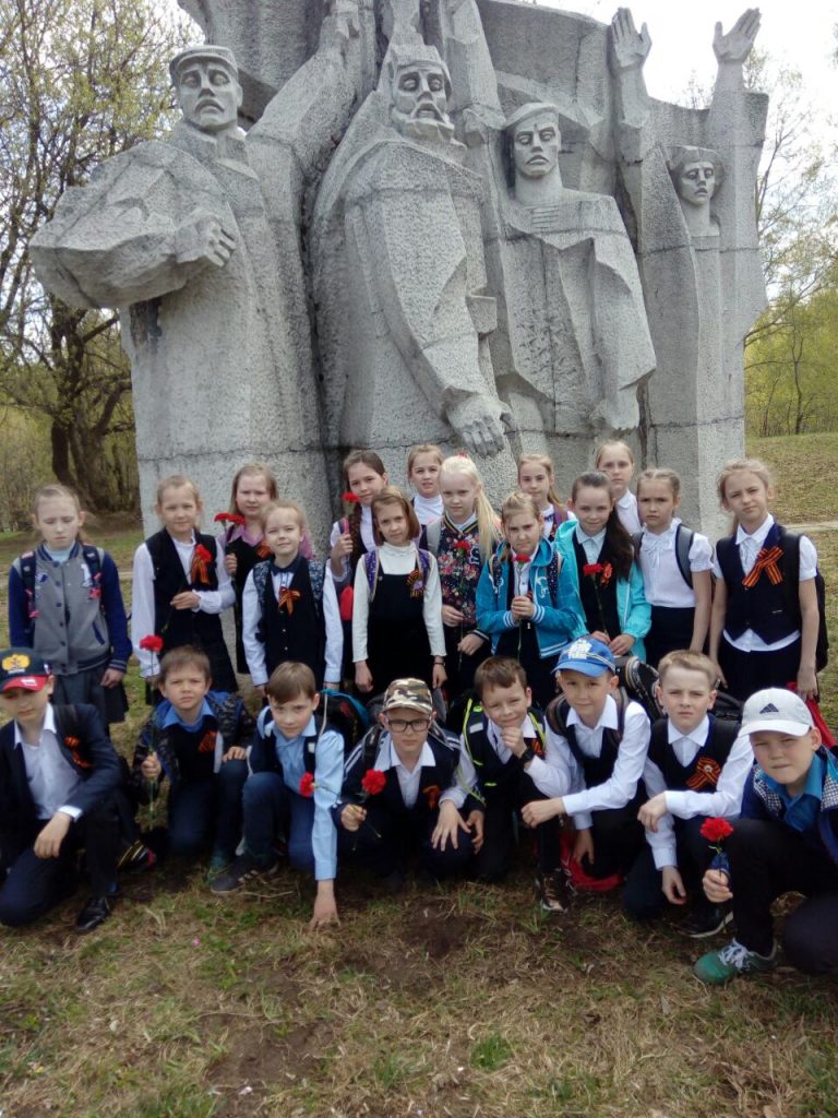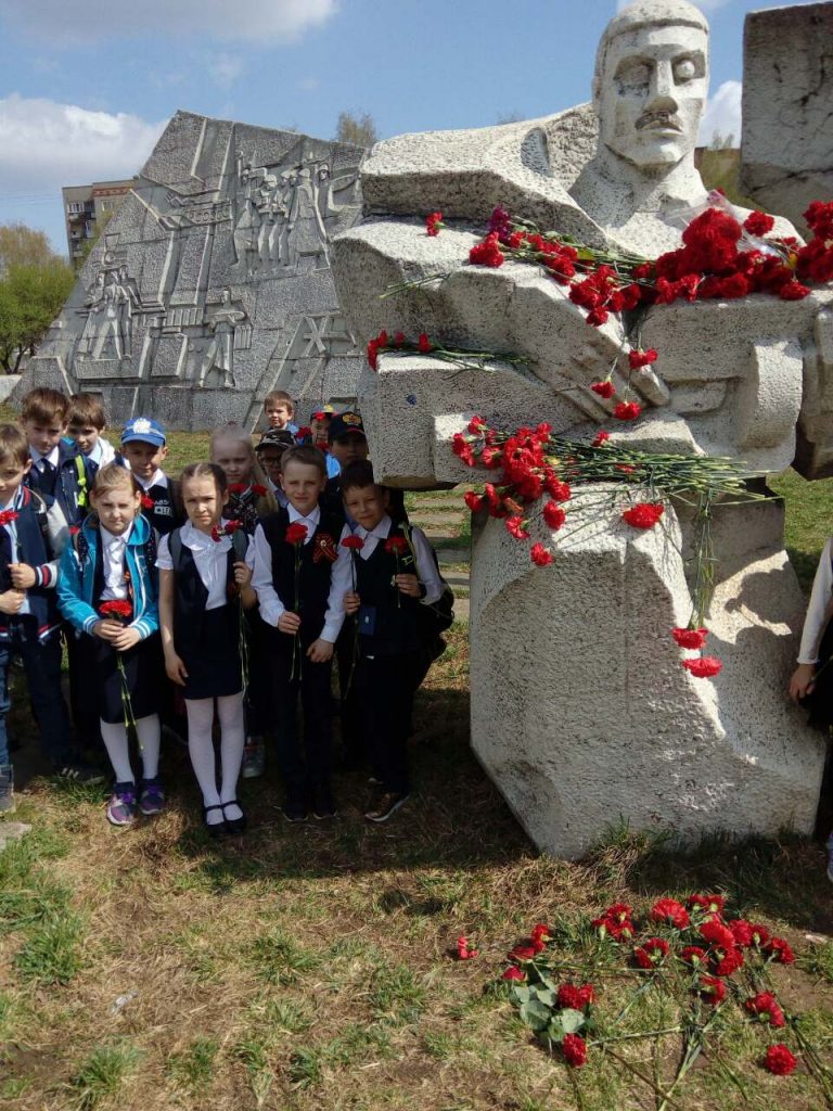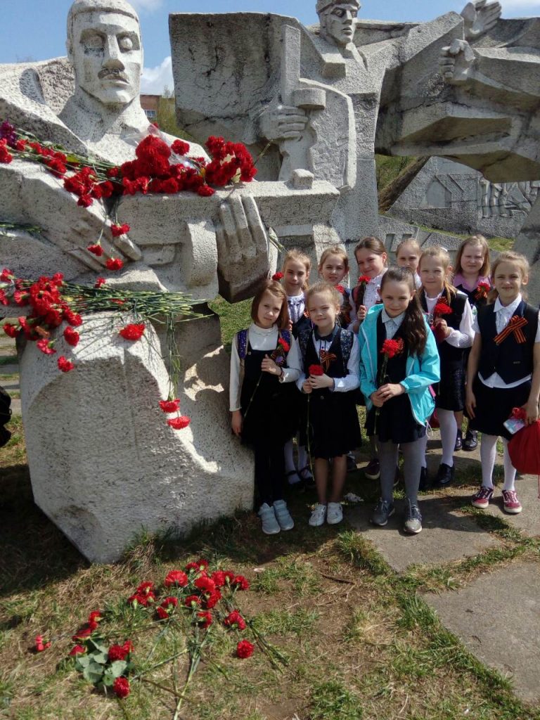 Ученики 3А класса на возложении цветов в мемориальной зоне, увековечивающий подвиг воинов-кировчан, погибших в годы Великой Отечественной войны у ДТ-Мемориал.