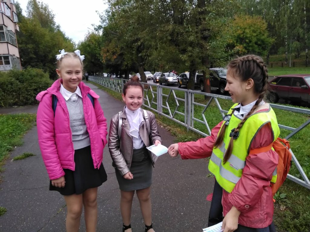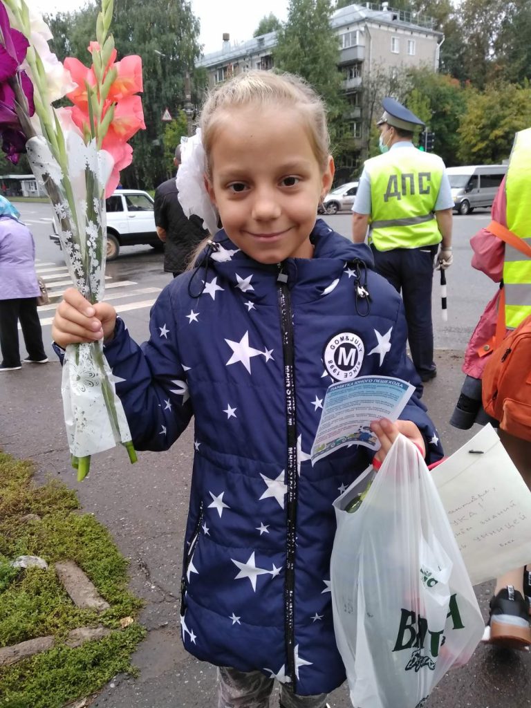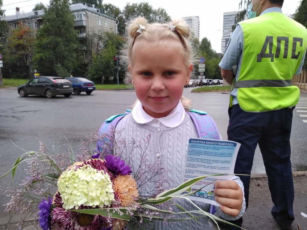 1 сентября 2020 года ученики 6 Д класса (классный руководитель — Карнаухов Кирилл Олегович) раздали юным пешеходам памятки, напоминающие о правилах безопасности на дорогах города.