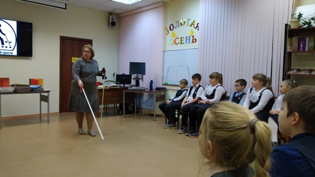 Ученики 3-Д класса МБОУ СОШ с УИОП №51 приняли участие в мероприятиях, посвященных Международному дню белой трости.13 октября 2021 г ЮИДовцы посетили библиотеку Всероссийского общества слепых, которая находится по адресу ул. Сурикова, 10. Ребятам рассказали о незрячих и слабовидящих людях в нашем обществе, о проблемах они сталкиваются в жизни. Сотрудники библиотеки показали книги, написанные шрифтом Брайля и имеющие тактильные иллюстрации. Показали, как пользуются белой тростью незрячие и слабовидящие люди для передвижения по городу и при переходе дороги. Ребята попробовали пройти с белой тростью, преодолев препятствия, и убедились в том, как это сложно! Теперь ребята знают, что если ты видишь слабовидящего или слепого человека, то надо помочь перейти дорогу, подсказать номер подъезжающего автобуса, прочитать надпись, помочь сориентироваться в городе.