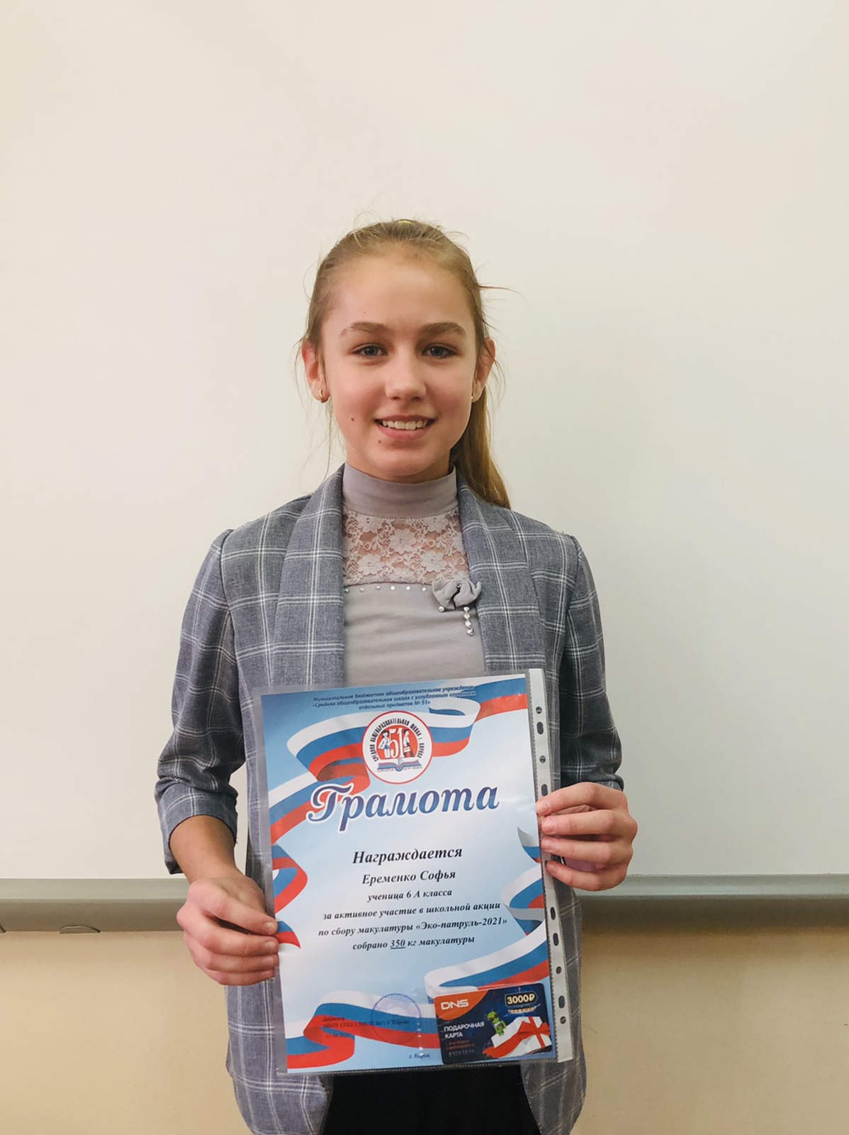 3 место — 4Г (571,4 кг) классный руководитель — Арасланова Л.Р.,