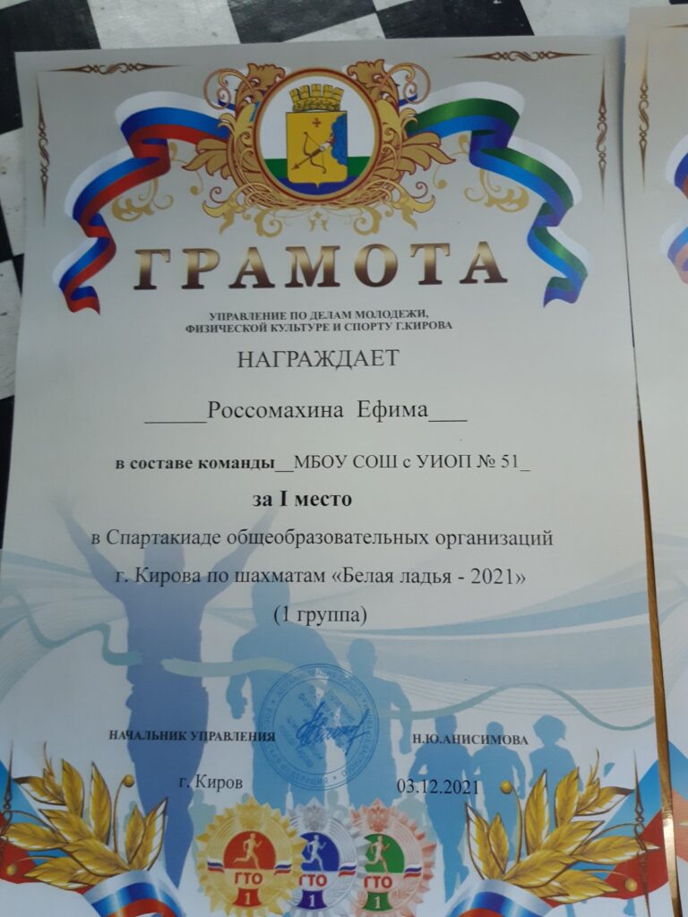Участие в Спартакиаде общеобразовательных организаций города Кирова по шахматам «Белая ладья-2021»