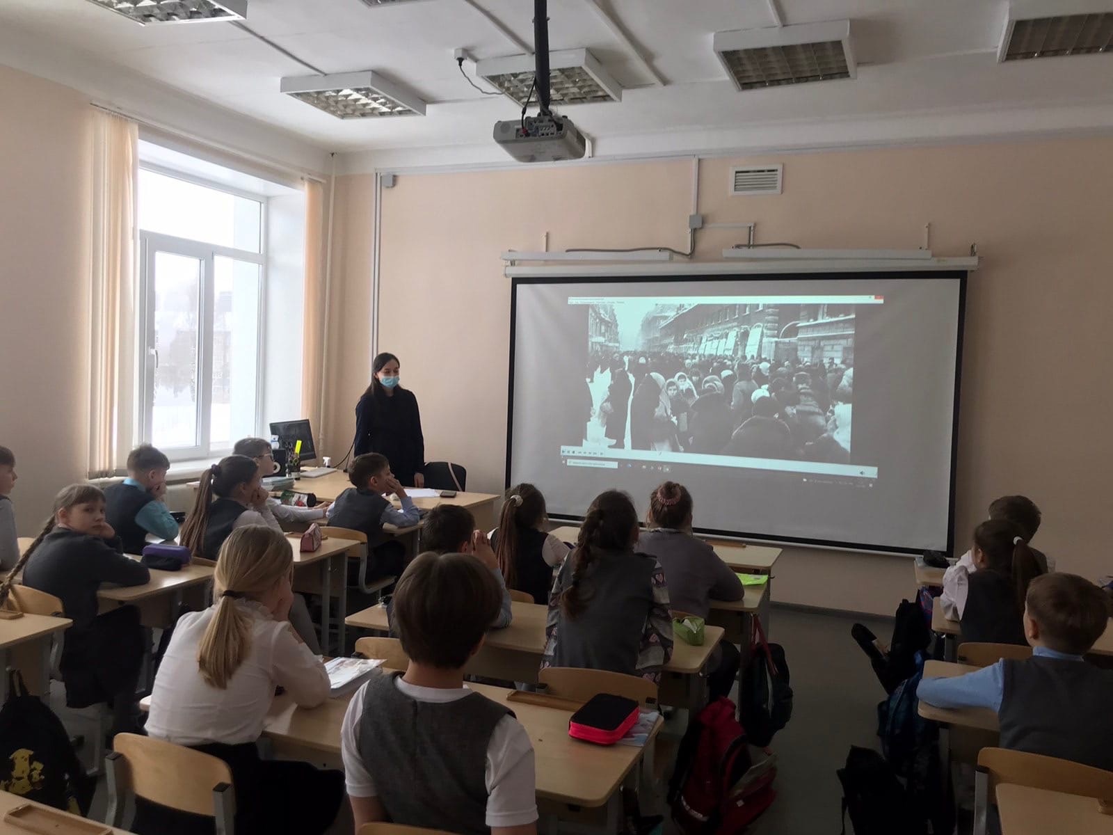 24 января 2022 года в четвертых и восьмых классах школы прошли Всероссийские уроки памяти «Блокадный хлеб» и памяти жертв Холокоста. Цели проведения уроков – это сохранение исторической памяти о мужестве и трагедии мирного населения блокадного Ленинграда, о величайших трагедиях, которые не должны повториться. Педагог-организатор Фукалова Фируза Шокировна рассказала ученикам о гражданском подвиге жителей и защитников блокадного Ленинграда, о значении обороны города в общей Победе в Великой Отечественной войне. Ученики выполняли задание, из которого узнали имя Тани Савичевой, расшифровывали послание, записанное при помощи а