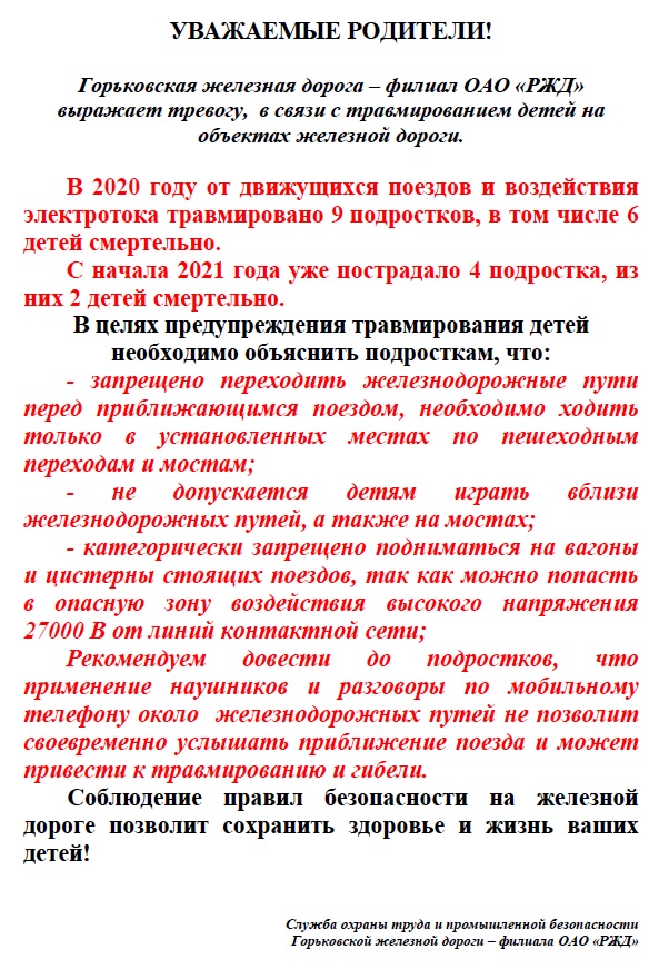 Памятка «О правилах поведения вблизи железной дороги» смотреть PDF 0,35Mb